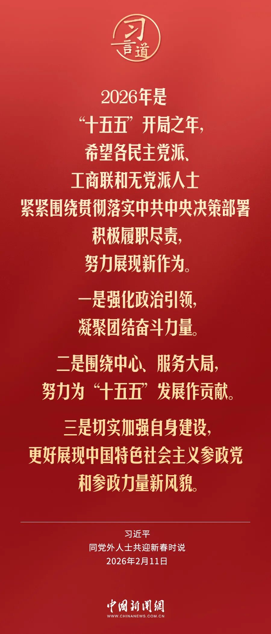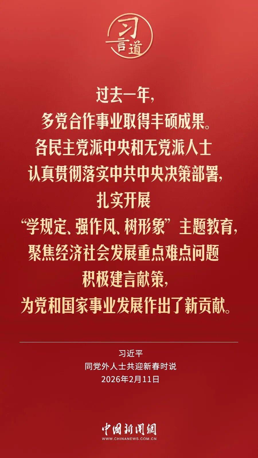 2月11日,在中华民族传统节日丙午马年春节即将到来之际,中共中央总书记、国家主席、中央军委主席习近平在人民大会堂同各民主党派中央、全国工商联负责人和无党派人士代表欢聚一堂,共迎新春。